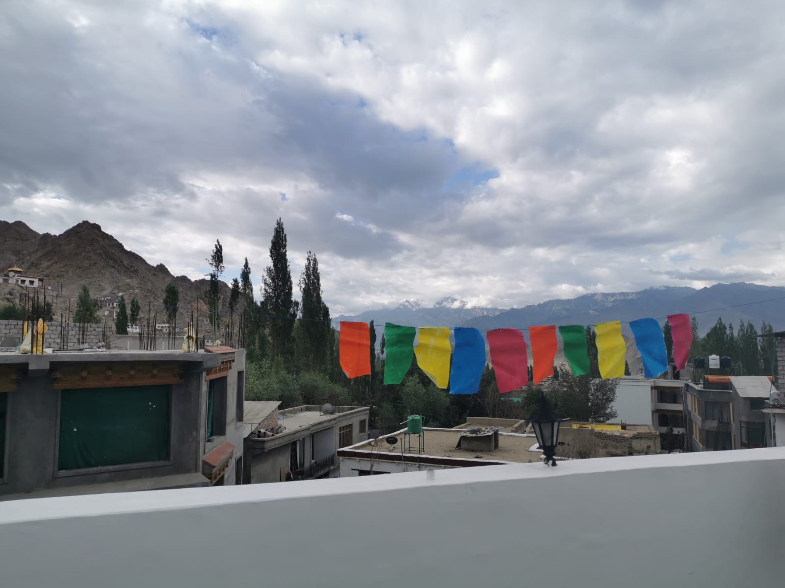 La guirlande réalisée par les résidents a été amenée dans la région du Ladakh, auprès des drapeaux de prières suspendus à chaque sommet.