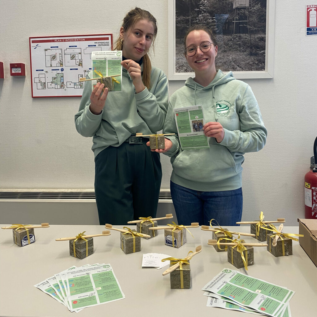 C’est ainsi que nous avons distribués des kits d’hygiène contenant une brosse à dent en bambou et du savon solide à la bibliothèque de l’Alinéa en mars 2023. Ce kit était accompagné d’un guide rempli d’astuces et d’aides (alimentaires, médicales, culturelles, sportives, etc) pour les étudiants en situation de précarité de l’Unistra. Vous pouvez retrouver le petit guide de survie d’un étudiant sur notre page Instagram.